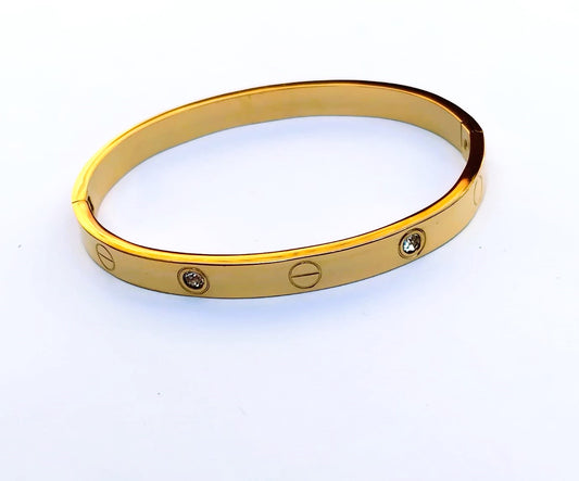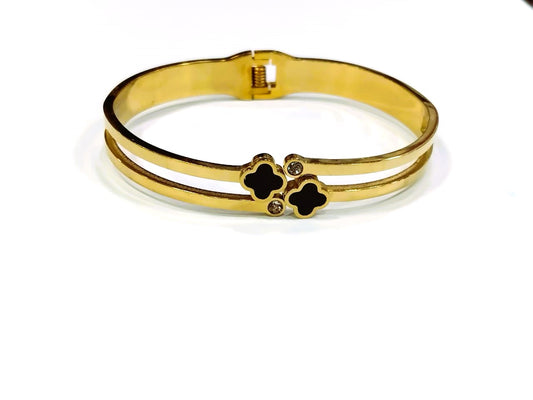 2 Clover Bangle - Golden Stainless Steel Elegant Bracelet