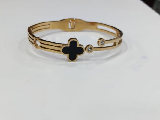 Clover Flower Bangle with Crystal Stones – Golden Stainless Steel