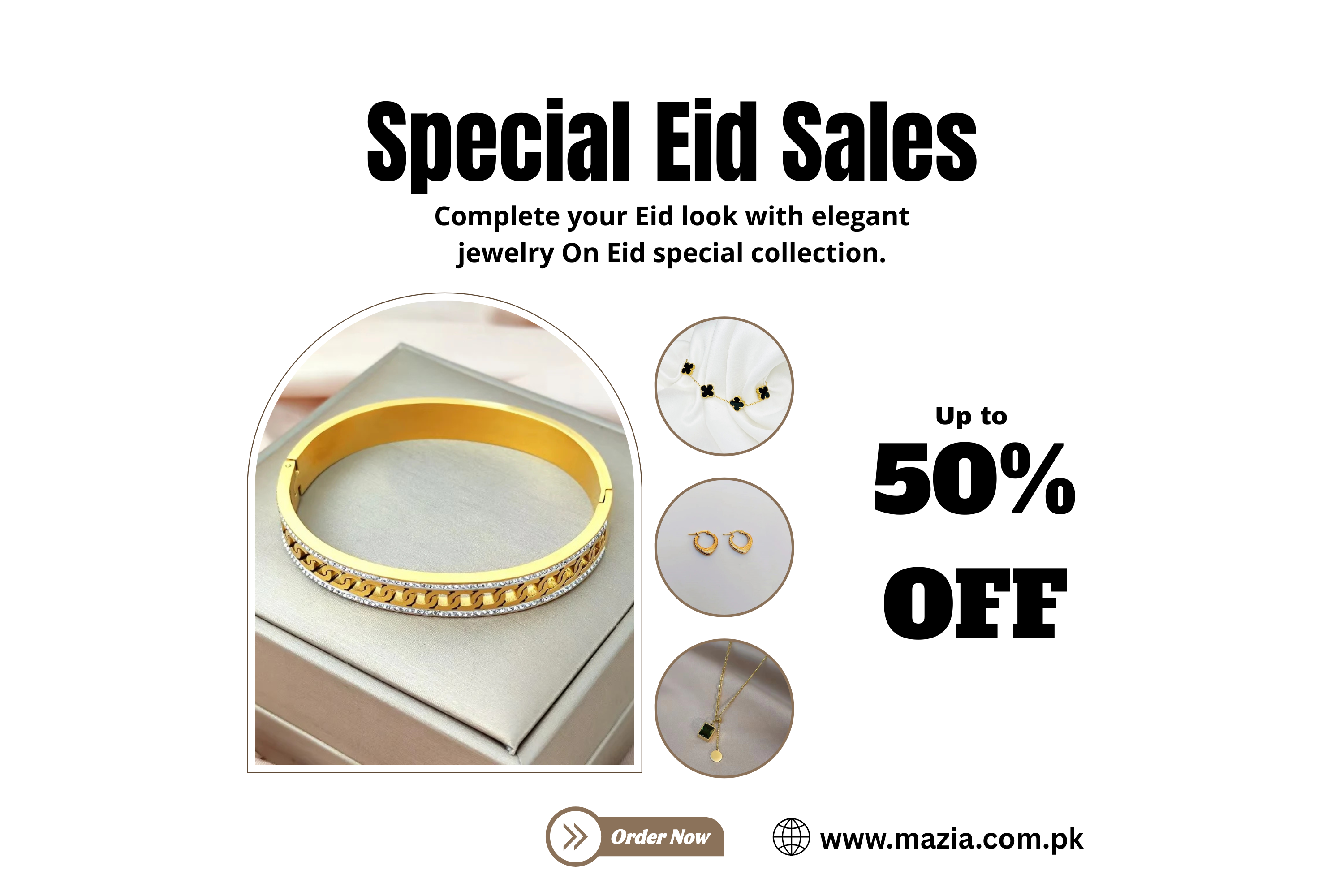 Clover Flower Bangle with Crystal Stones – Golden Stainless Steel