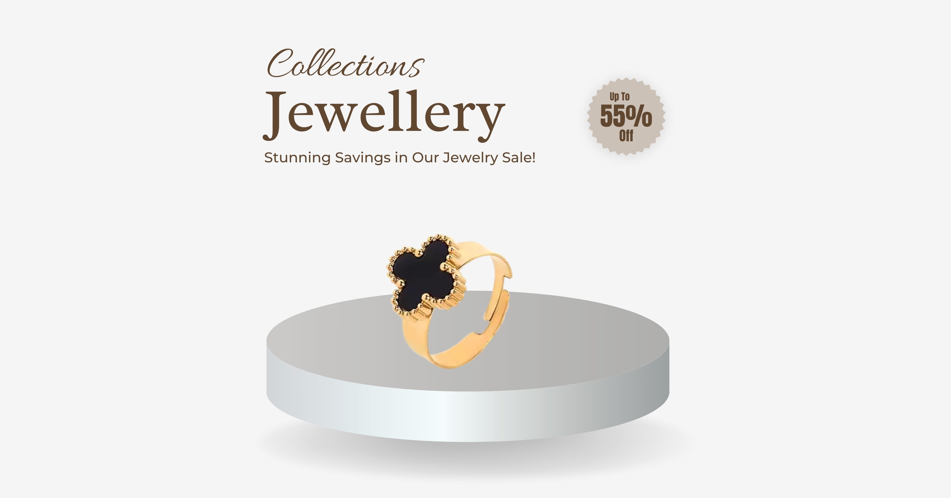 Adjustable Clover Ring – Golden with Black & White Stone | Stainless Steel