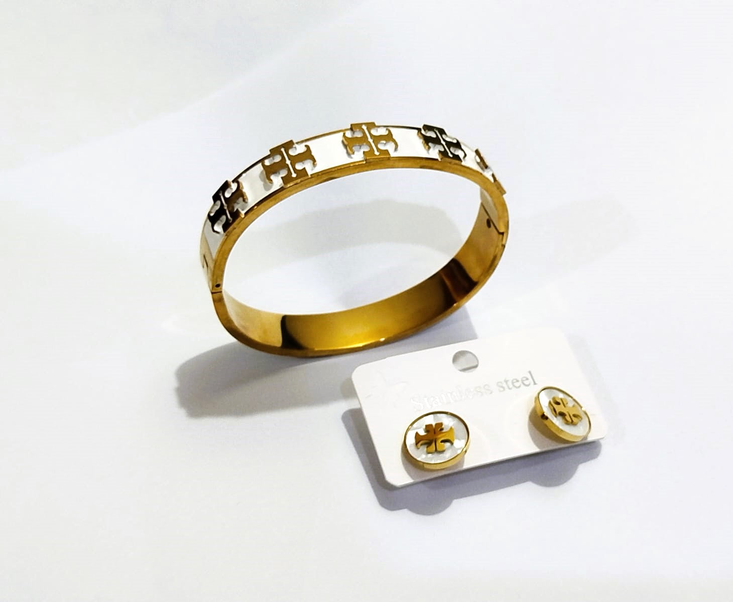 2pc Stainless Steel Bangle with Matching Earrings Set for Women - Mazia Fashion