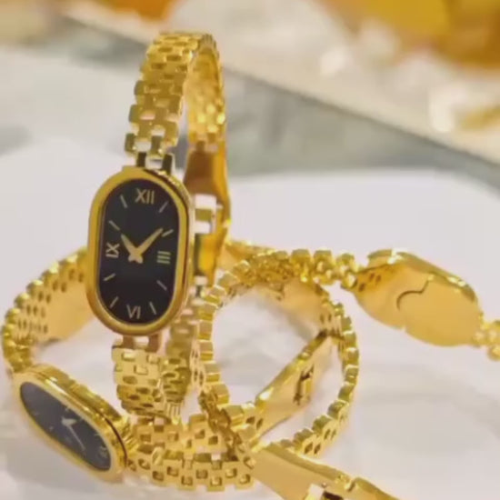 Elegant Gold Watch-Style Bangle Bracelet for Girls – Stainless Steel | Mazia Fashion