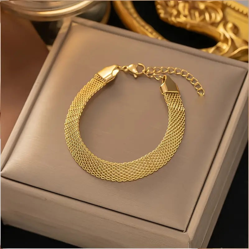 Golden Fashion Stainless Steel Chain Bracelet Enhancing Visual Appeal