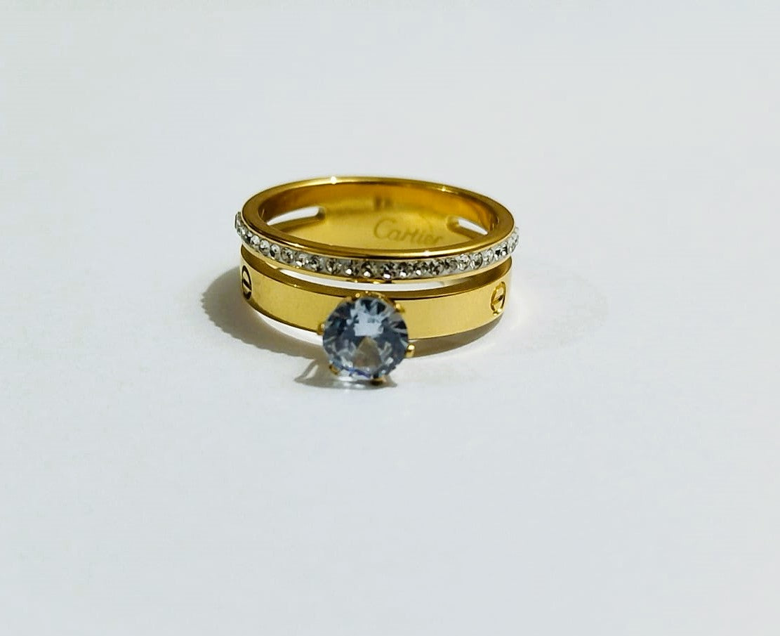 Golden Stainless Steel Ring with Shining Crystal Rinshine Stones