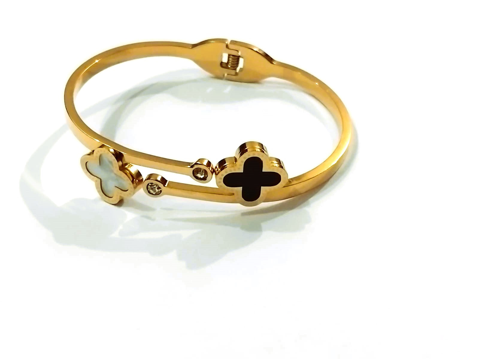 Elevate your style with our Luxury Clover Double Flower Bracelet, a perfect blend of elegance and modern design. Crafted from premium stainless steel, this bangle is durable, tarnish-resistant, and ideal for everyday wear or special occasions. The charming double flower clover design adds a touch of sophistication, making it a must-have accessory for any jewelry lover.
