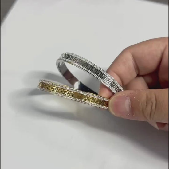 Mazia Golden Cuff Bangle – Stainless Steel Luxury for Girls | Skeleton Design with Rhinestones